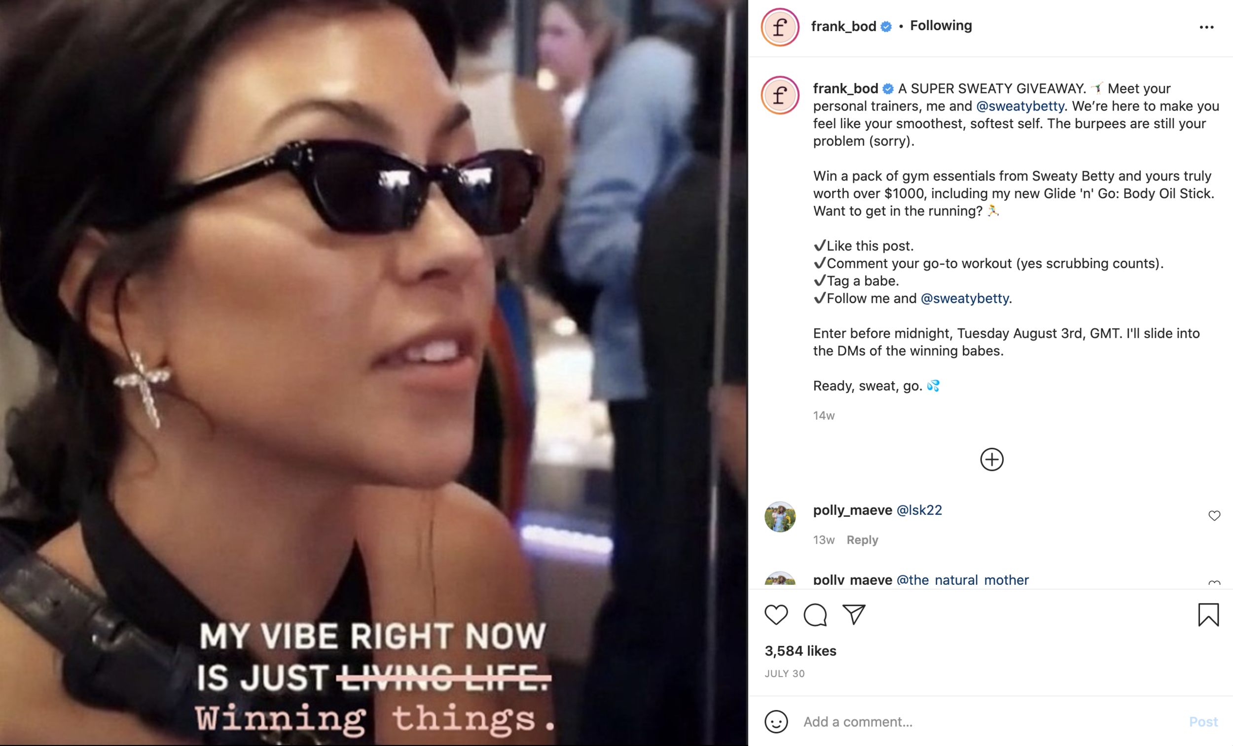 Instagram caption & stories for a @sweatbetty collab